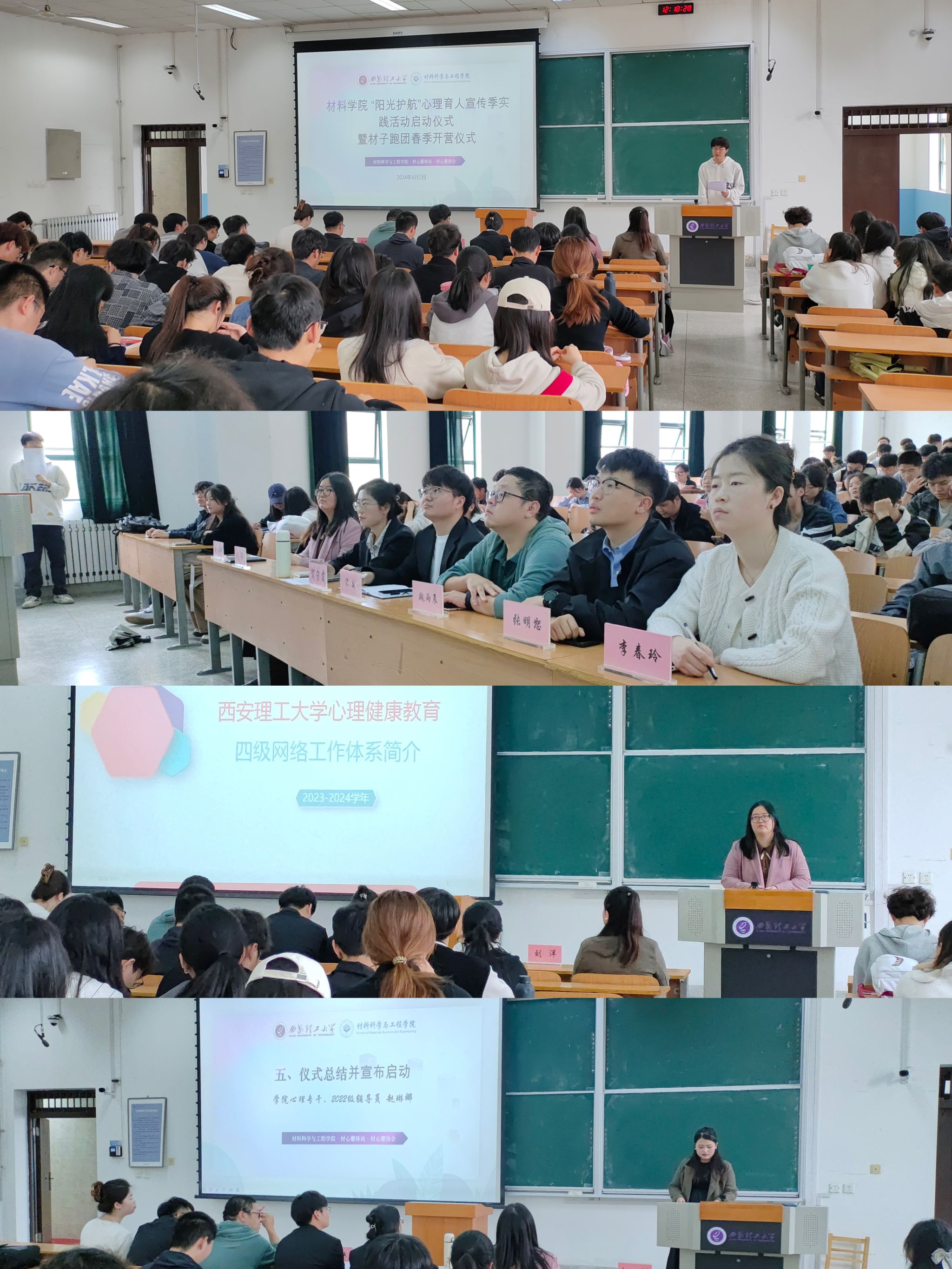 为贯彻落实公司第九届“阳光护航”心理育人宣传季实践活动的通知精神,做好老员工心理健康工作。威廉williamhill体育于4月2日在曲江校区开展心理育人宣传季实践活动启动仪式暨材子跑团春季开营仪式,校心理健康中心刘洋、学院辅导员、班长、心理委员、舍长、宿舍心晴员参会。