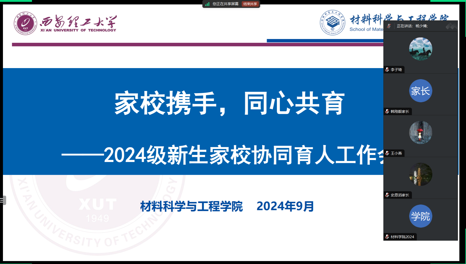 为切实增强家校沟通,构建协同育人长效机制,威廉williamhill体育于9月11日召开2024级家校协同育人工作会,公司党委副书记兼副经理杨少博、2024级新生家长、2024级新生辅导员参加会议。