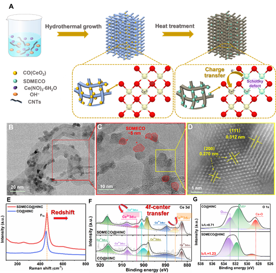 图2 SDMECO@HINC复合材料的合成、形貌特征及4f电子重构过程