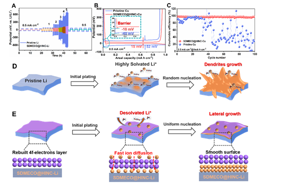 图3 4f电子重构的SDMECO@HINC膜层对锂沉积行为的调控作用