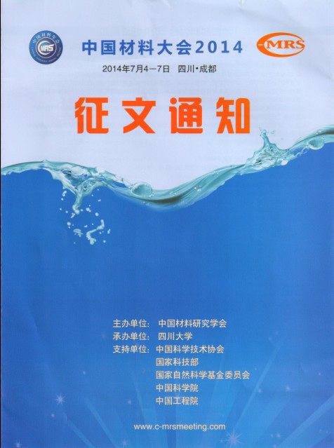 “中国材料大会2014” 定于2014年7月4-7日在四川成都召开,会议由中国材料研究学会主办,四川大学承办。大会共设19个分会场及材料教育论坛,涉及的领域包括能源与环境材料、新型功能材料、高性能结构材料及材料基础研究。